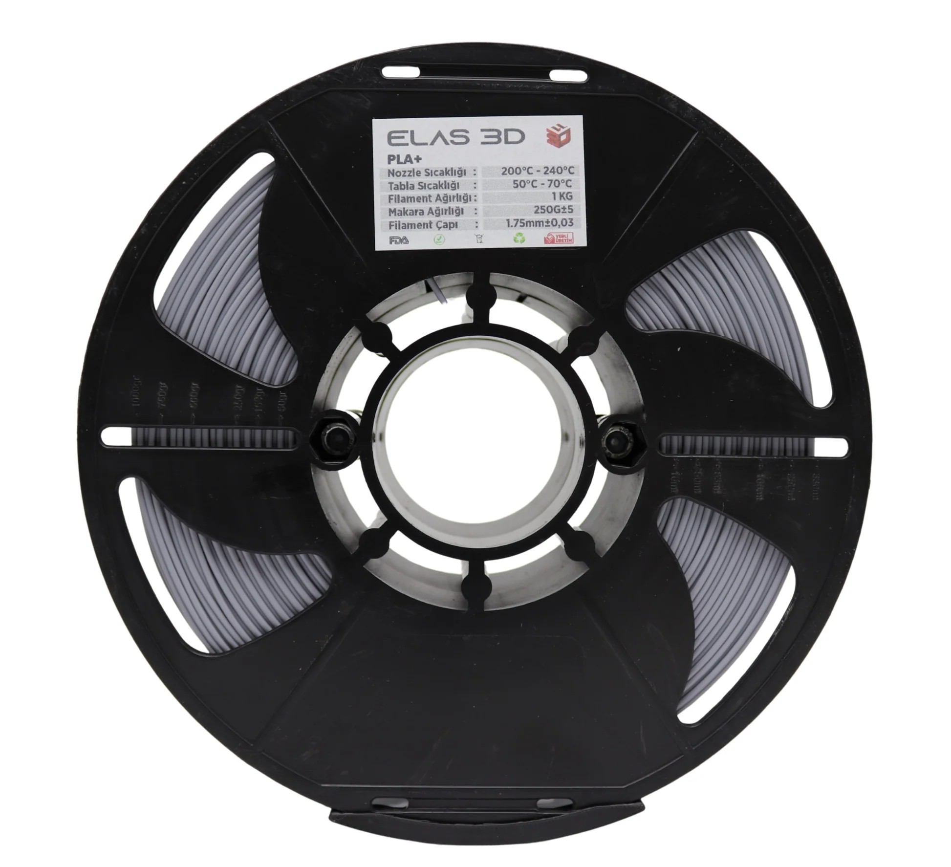 • Elas3D Gri PLA Plus Filament:1.75mm ±0.03 Tolerans