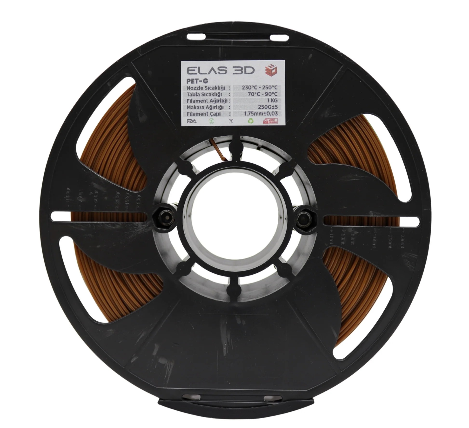 • Elas3D Kahverengi PETG Filament:1.75mm ±0.03 Tolerans