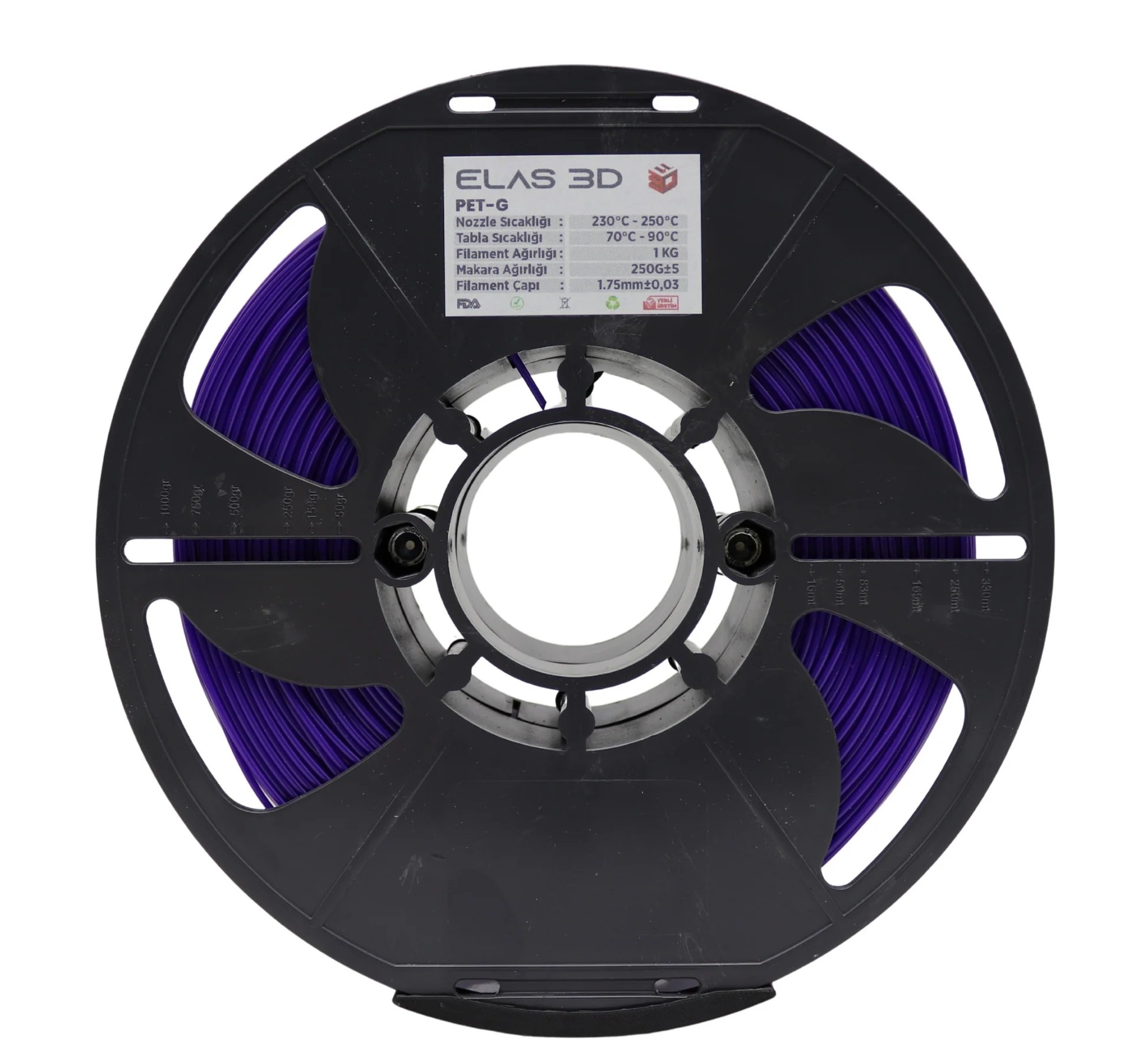 • Elas3D Mor PETG Filament:1.75mm ±0.03 Tolerans