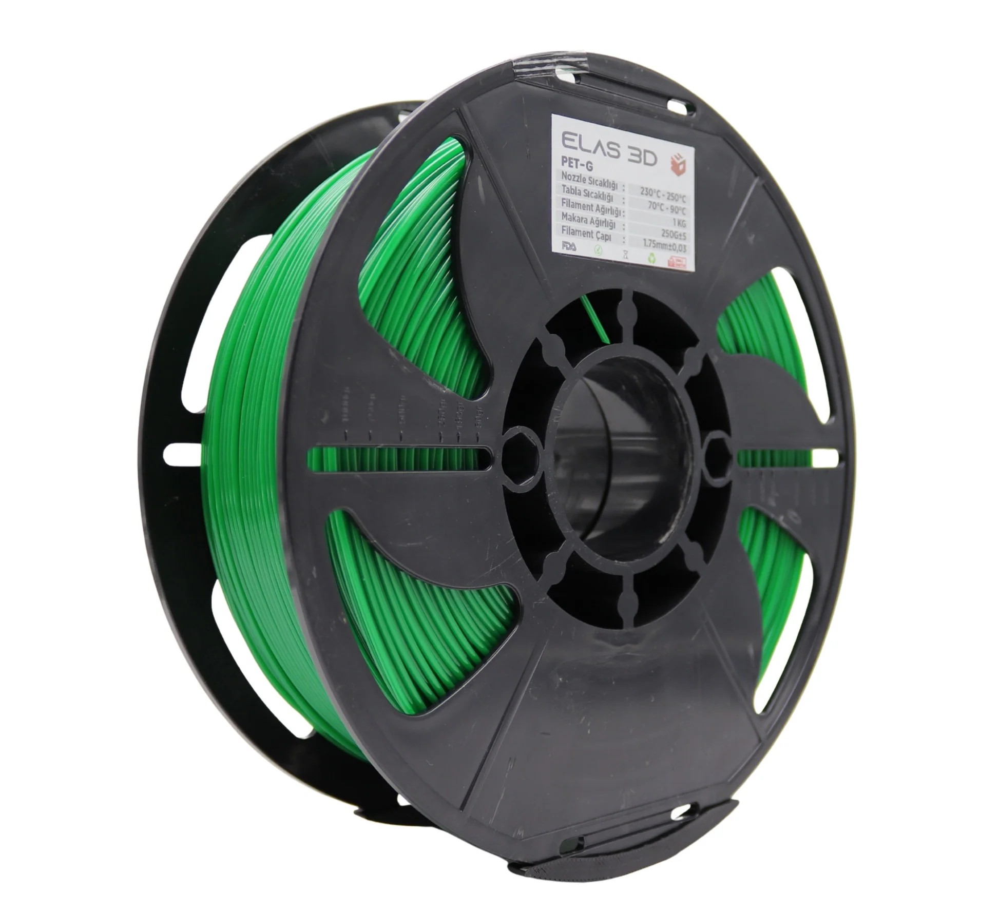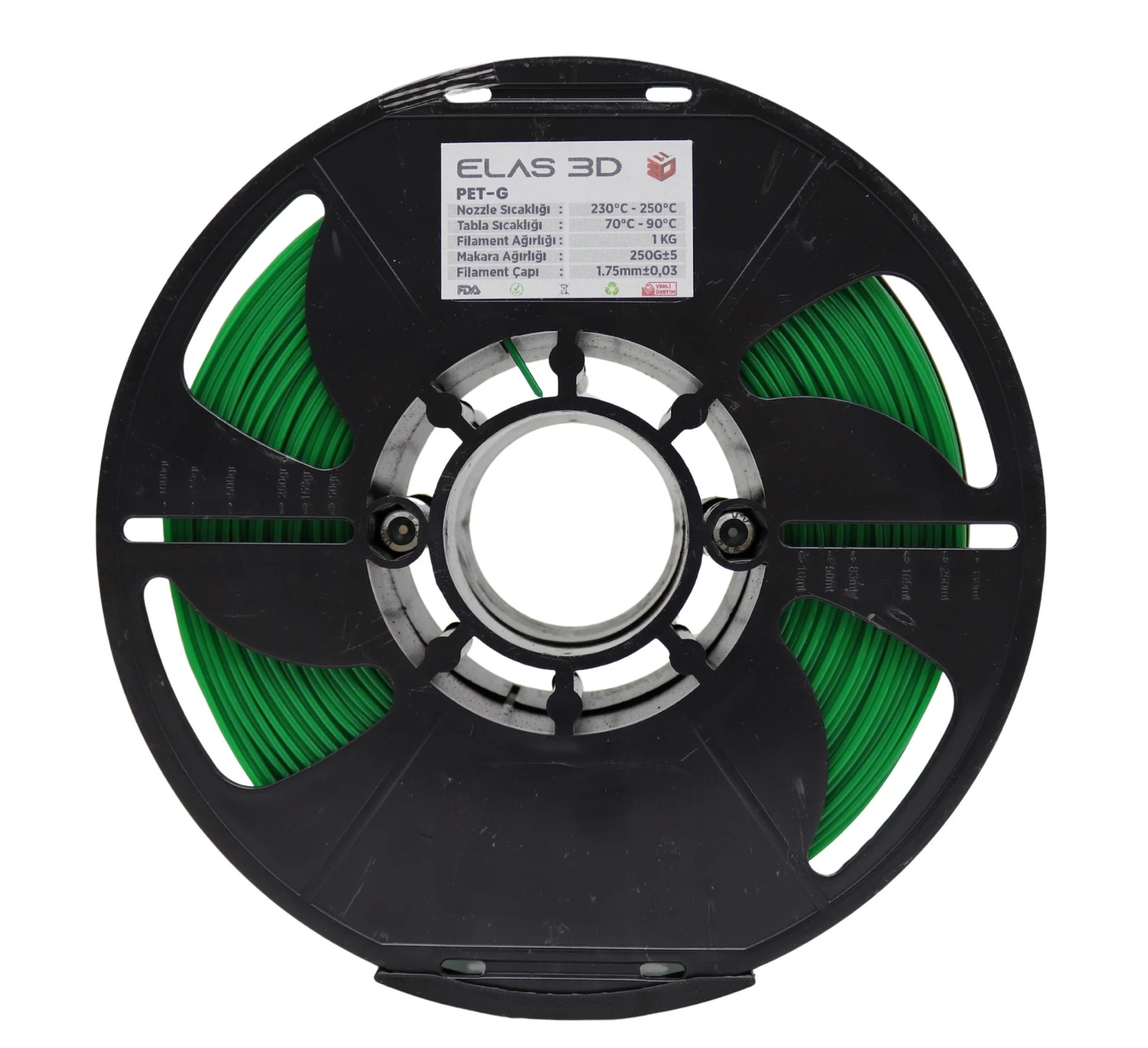 • Elas3D Yeşil PETG Filament:1.75mm ±0.03 Tolerans